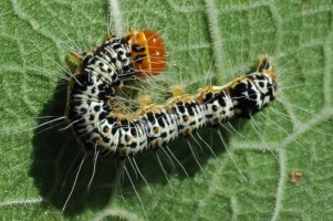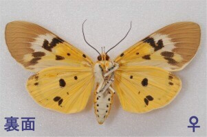 後翅の黒紋、腹部背面の黒紋の数に少し違いがみられる他は違いがほとんどみられない。 前翅は♂がやや長く、♀はやや丸みを帯びる。♀は触角が糸状なので簡単に区別できる。